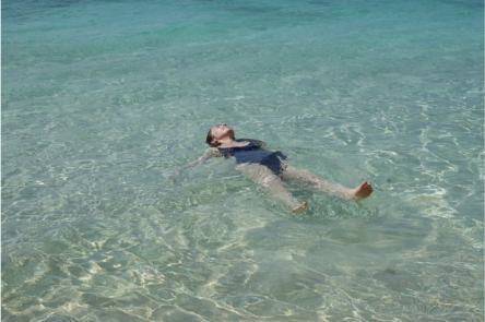 ネイビーの水着姿で四つ這いになり、ウエストからヒップの美曲線をあらわにした、沖縄での撮影ショットを添えた。