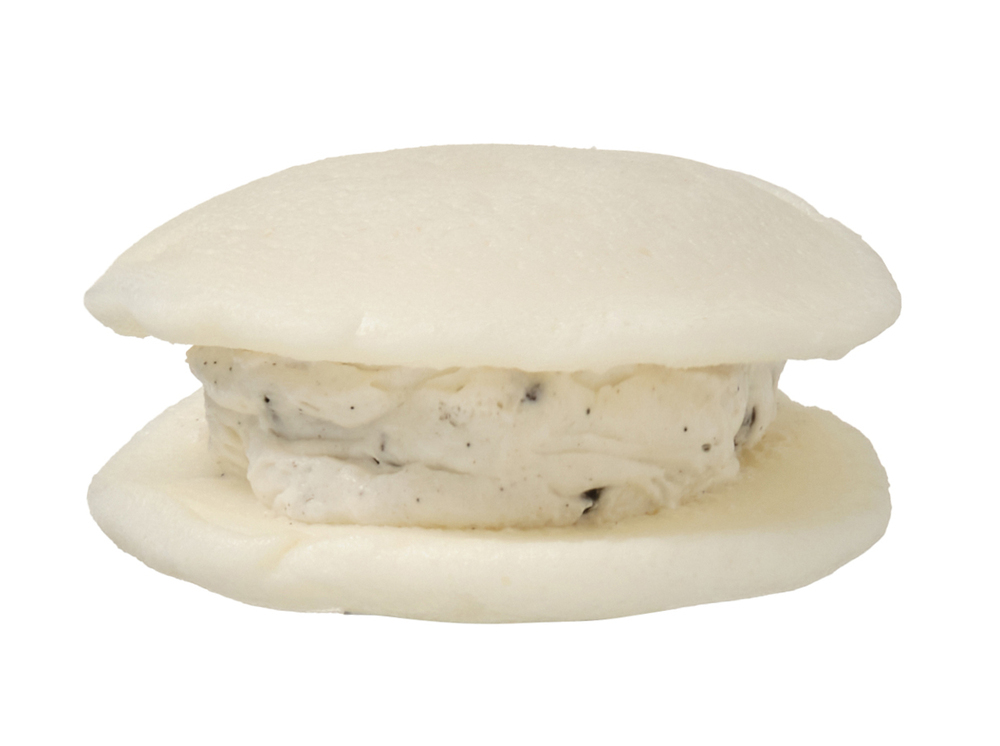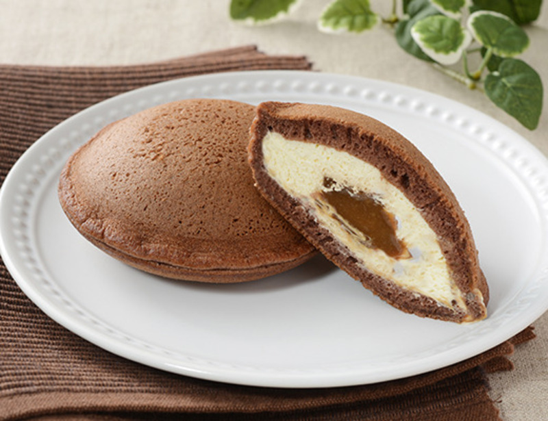 しっとりとした食感のココアビスケットを混ぜ込んだ、バニラ風味のクリーム。それを、もちもちとした食感の白いどらやき生地でサンドした一品です。