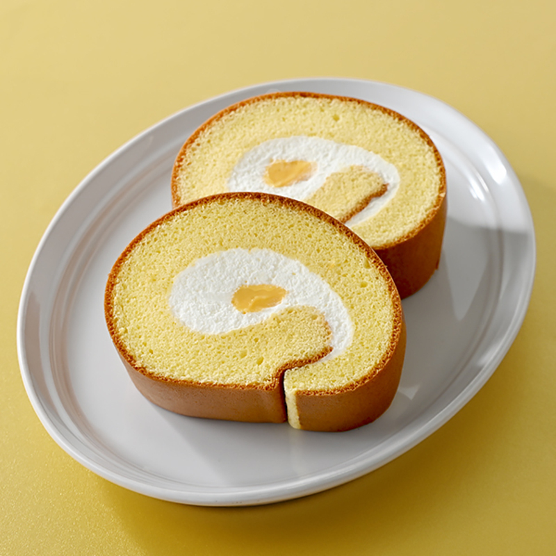 きめ細やかなスポンジ生地が、北海道産生クリームのホイップと、コクのあるカスタードクリームを優しく包み込むロールケーキ。