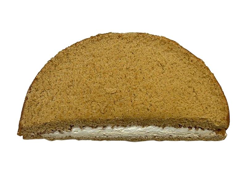 半月型にカットされた、ふんわり食感のコーヒー風味シフォン生地。その間に、コーヒー味のクリームとホイップクリームを挟み込んだ、満足感の高いスイーツです。