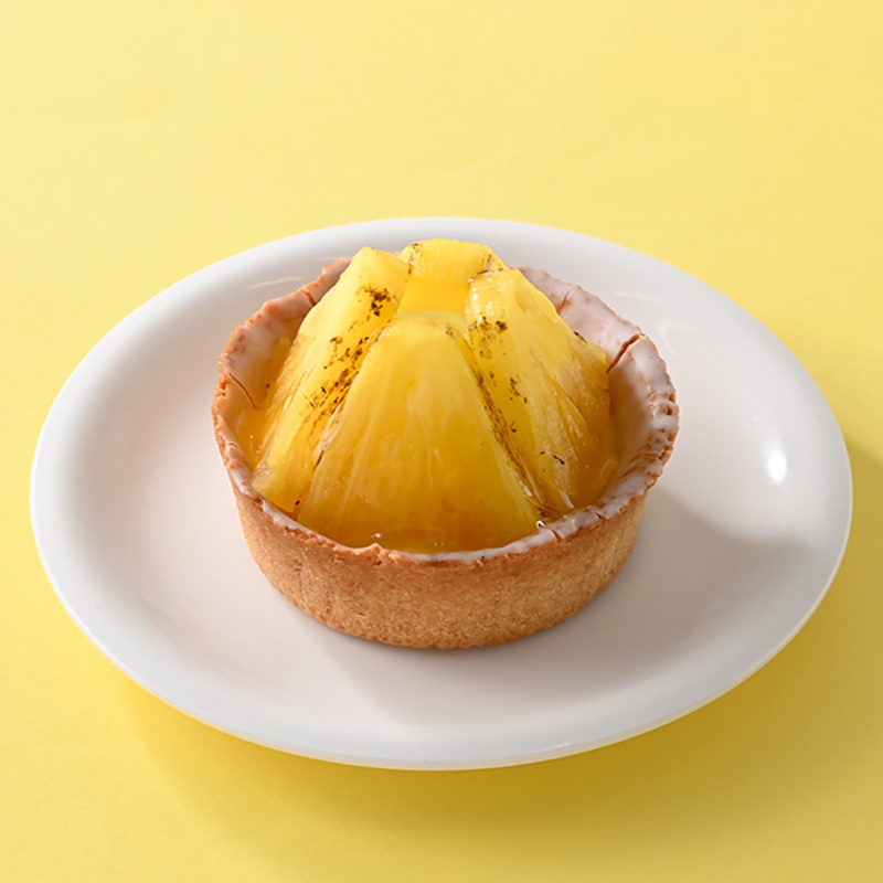 マドレーヌ生地を敷き込んだタルトの上に、カスタードとホイップクリームを絞り、カットした焼きパインを乗せることで、ジューシーな味わいの一品に仕上げた一品。