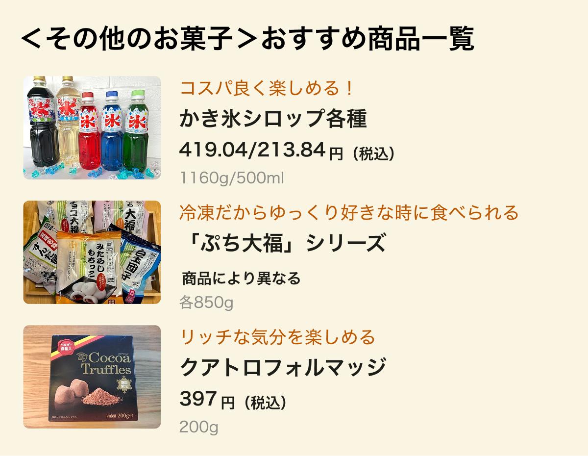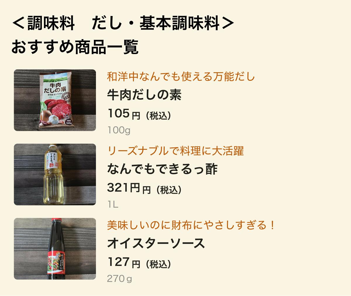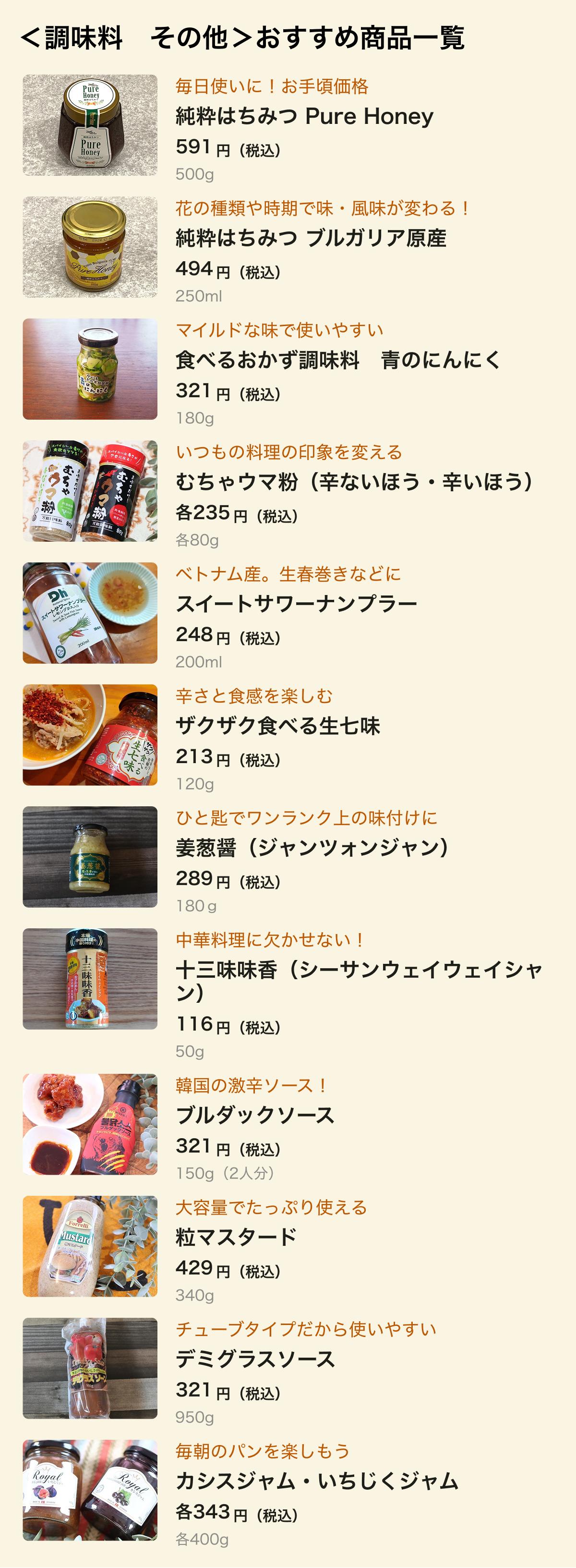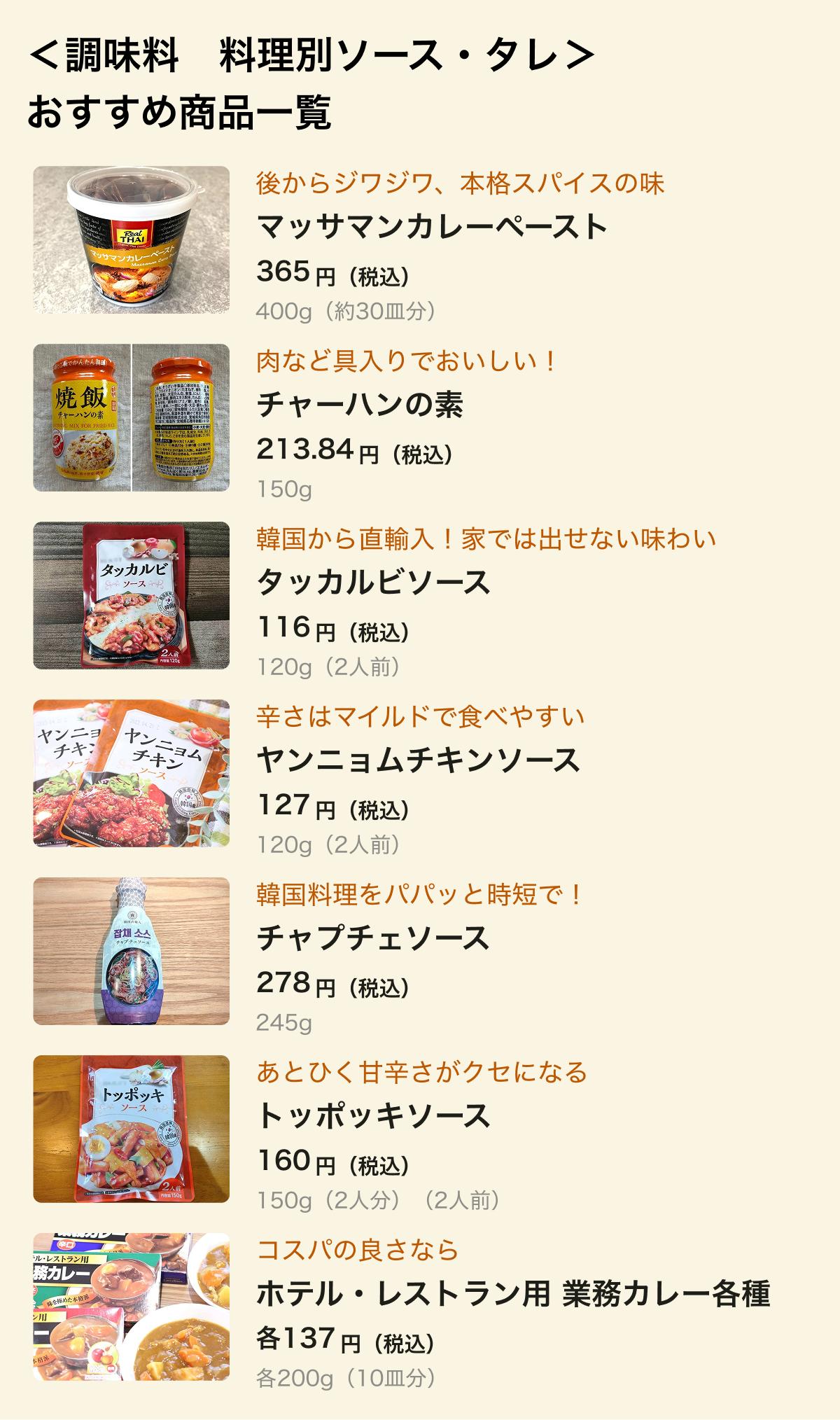 少し変わった冷凍食品、調味料、海外の商品、大容量の物などたくさんあり、そしてコスパも良いんです。毎日の調理の時短や食費の節約にも繋がるかも?!