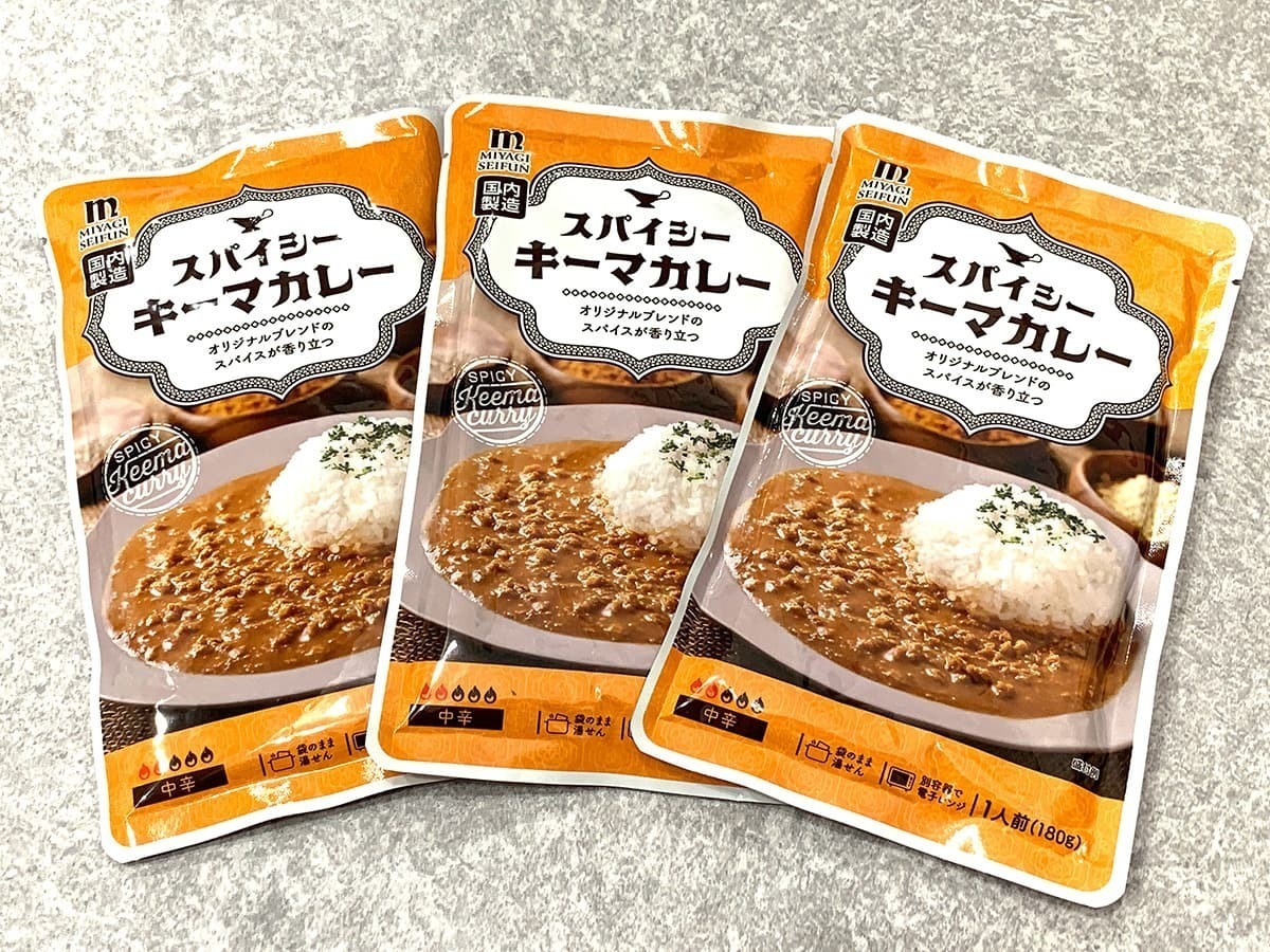 こちらは中辛レベルの、あらびきの鶏肉と大豆ミートを合わせたスパイス香る「スパイシーキーマカレー」です。