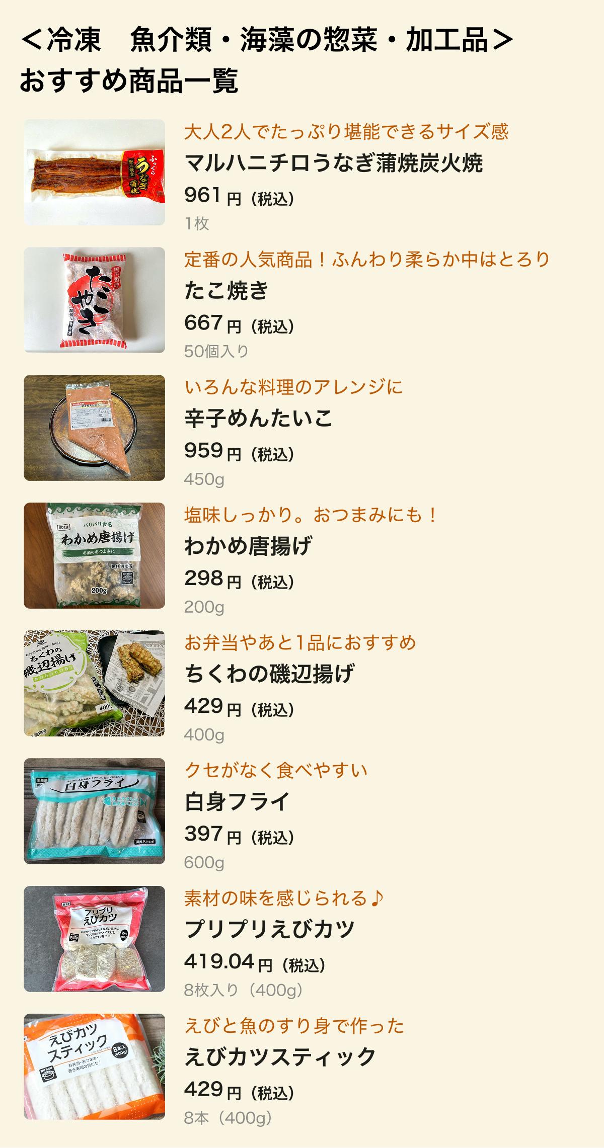 どれも手頃な価格で購入でき、かつ冷凍で長期保存も可能ですよ。