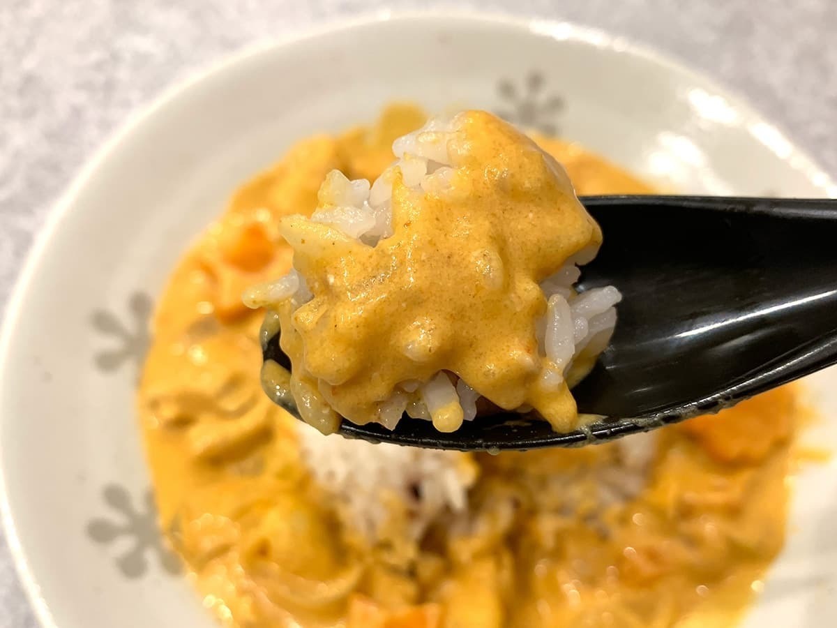 こちらは中辛ですが、それほど辛くないので辛味が苦手な人でも比較的食べやすいかもしれません。