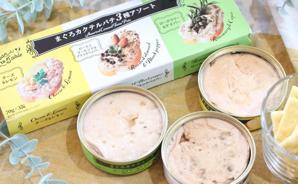 オシャレなツナパテ×3が429円(税込)と超お得!「チーズ&レモン」「ローストアーモンド&ブラックペッパー」「ローズマリー&ケイパー」の3種で、そのままホームパーティーに出せる超優秀缶詰です。
