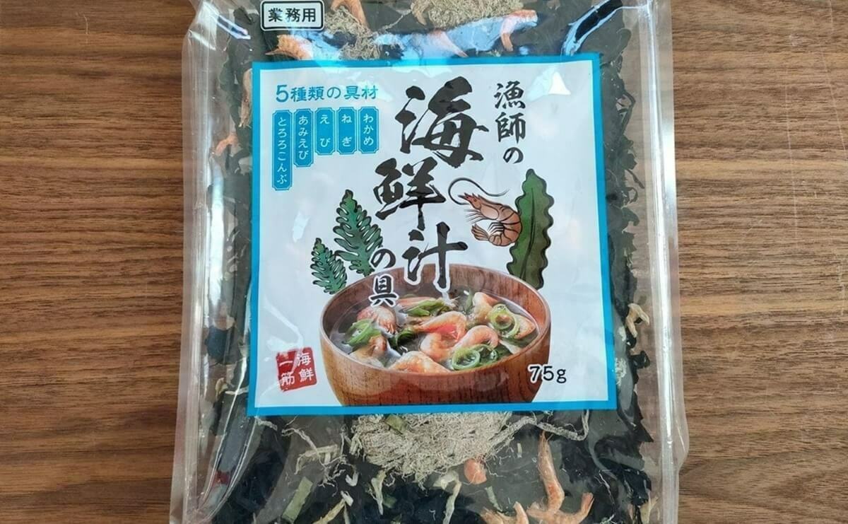 わかめ、ねぎ、えび、あみえび、とろろこんぶの5種の具材が一つにまとまってる乾燥アイテム。海鮮の具が入っているのが珍しく、そのおかげで和風だけでなく中華系の汁物にしてもおいしいんです。乾物なので長期間保存できる点も便利でもう手放せません!