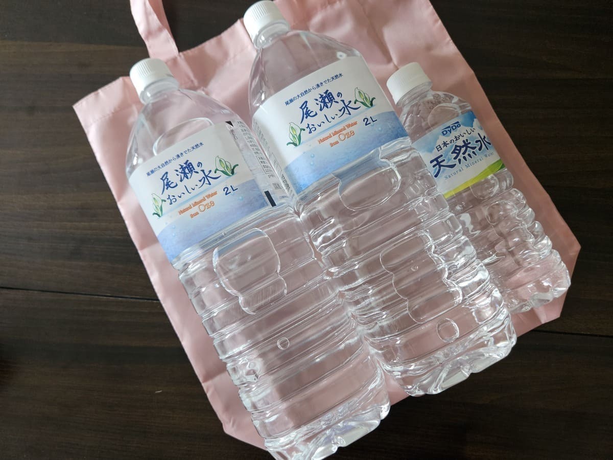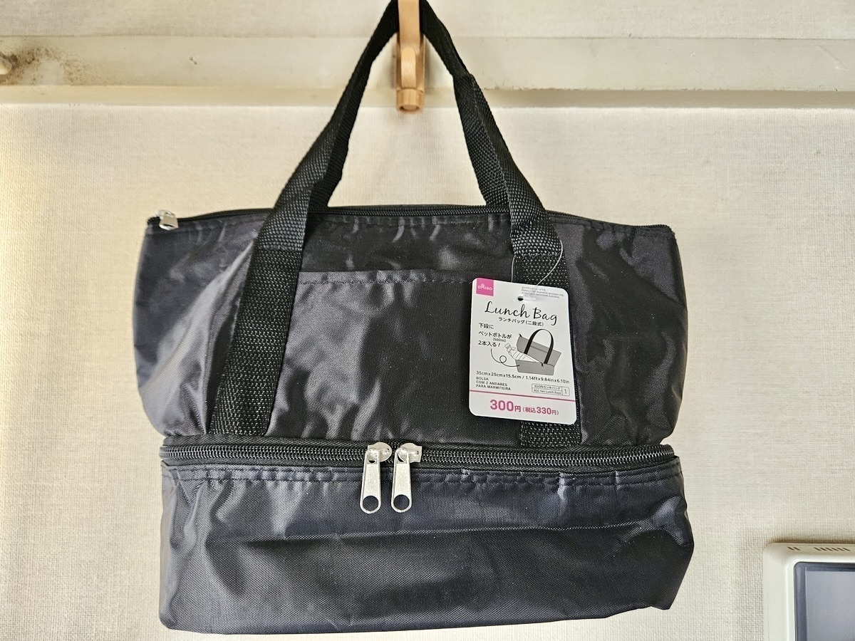 約横34cm、縦36cmで、マチもあるので、2Lのペットボトル2本と500mlが1本入りました!