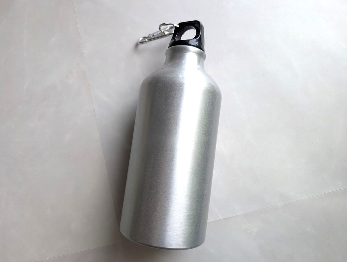 ダイソー製品とは思えないほどのクオリティに驚かされる、アルミ製のボトル。まず特筆すべきはその軽さ。550mlも入るのに、本体重量はわずか78gで、片手で軽々と持てます。