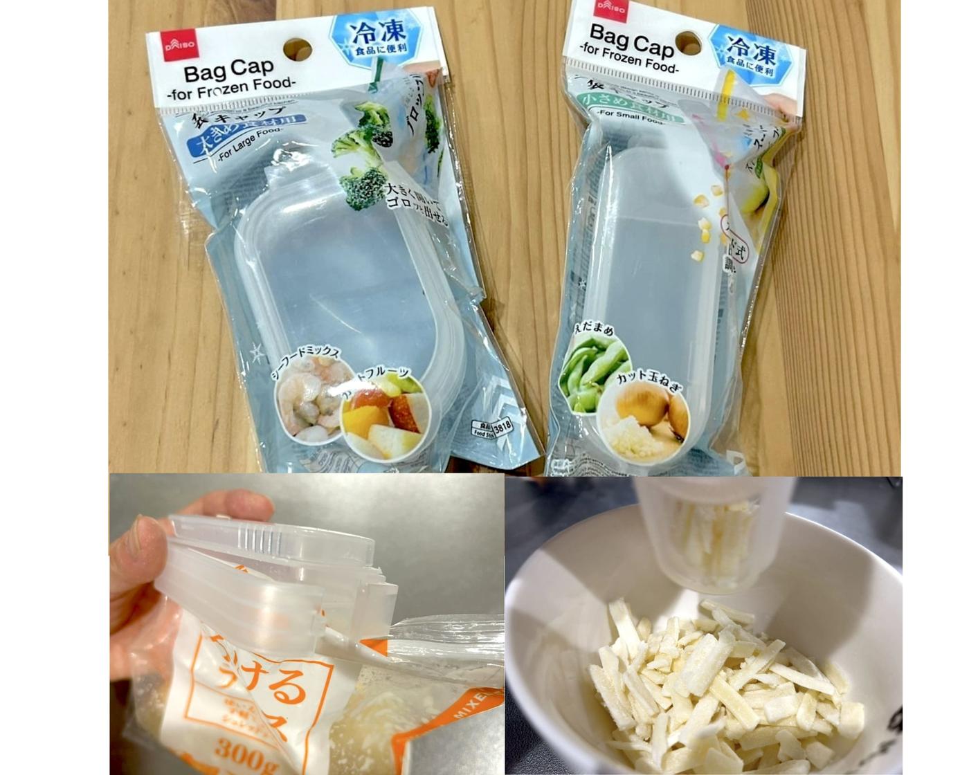 商品名:冷凍食品用袋キャップ(大きめ/小さめ)
