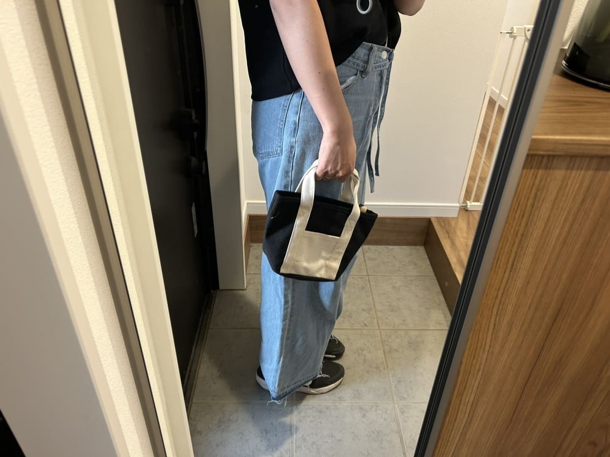 ワークマン女子で購入した「撥水ストレージキャンバストート」のSサイズです。