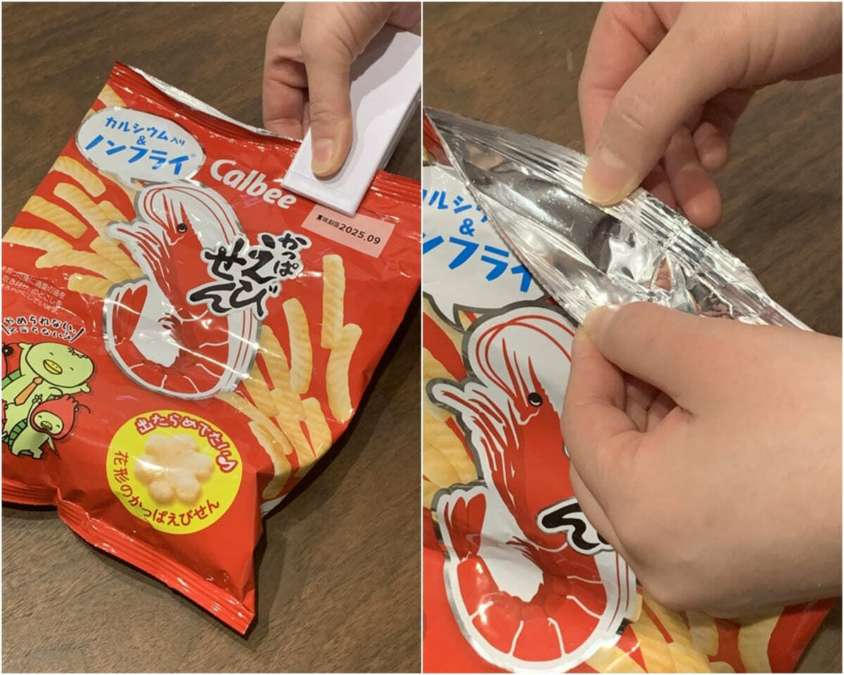 開封した袋のお菓子を密封する際に役立つのが「ピタッ!と熱で袋を閉じるシーラー」です。