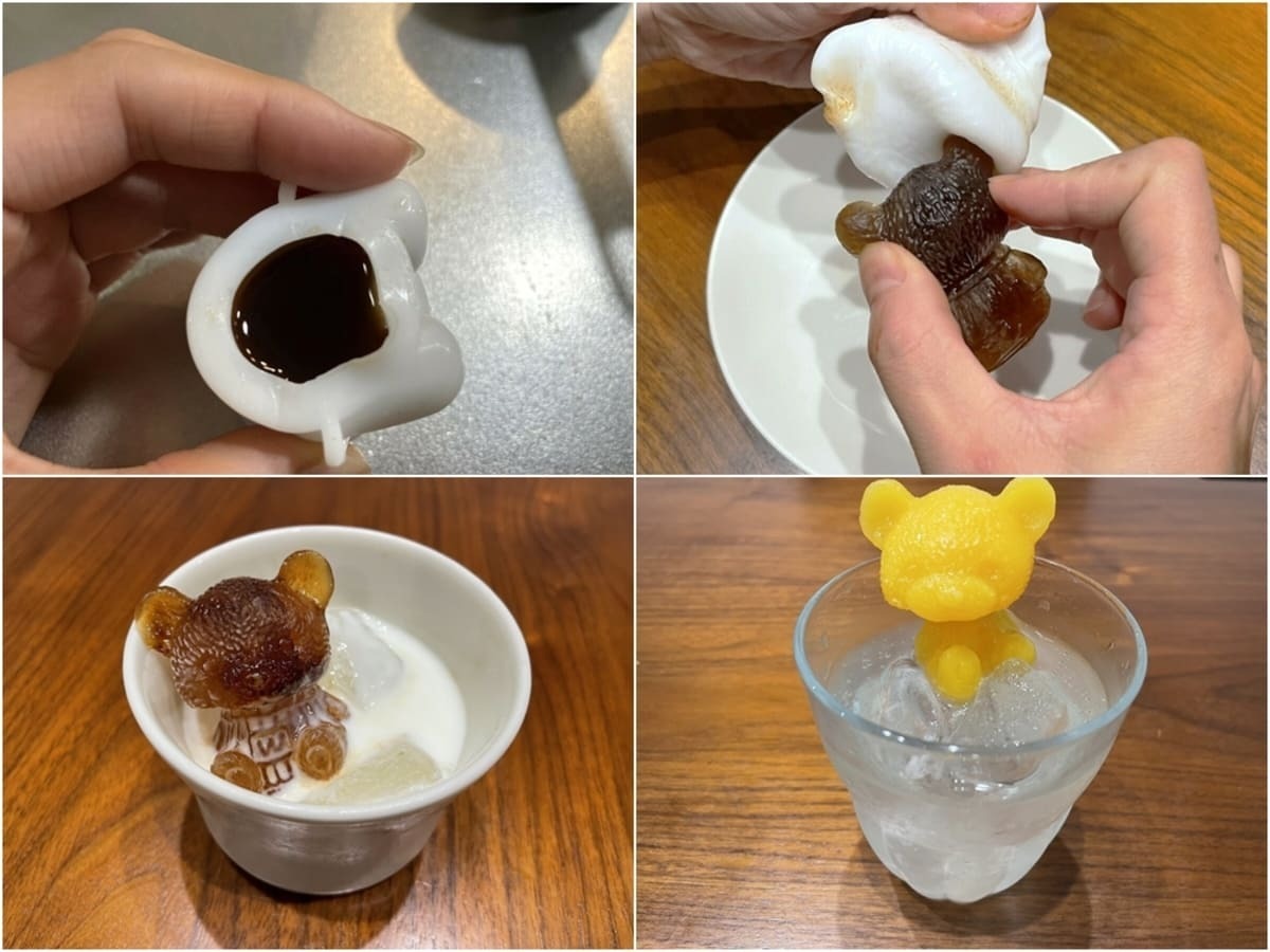 凍った後、シリコンを外せばクマの形の氷・シャーベットが完成します!