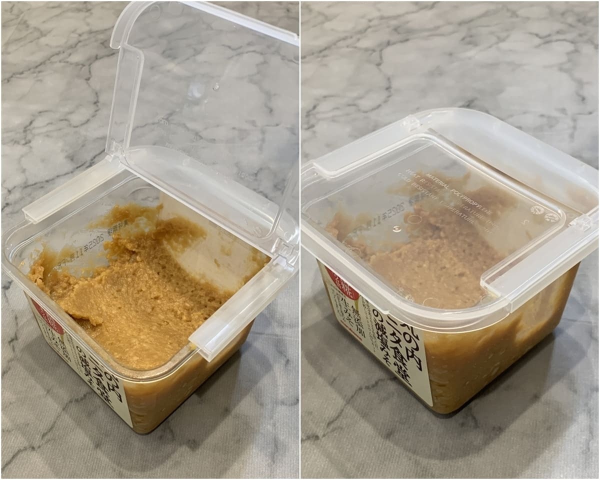 市販の味噌はおおよそペラペラのシール式の蓋の上に、さらにプラスチック製の蓋を付けた商品が多いですよね。