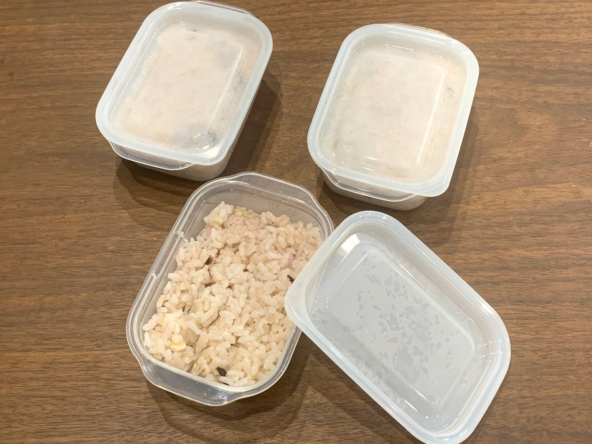我が家ではご飯を冷凍保存する用に、小サイズ3個入りの容器を購入しました!