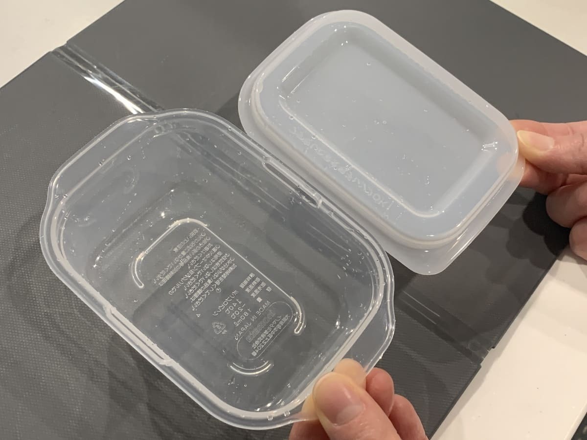 一方、こちらの「とにかく洗いやすい保存容器」は蓋と容器だけで密閉できるため、パーツが少なく洗う手間が非常に少ないです!