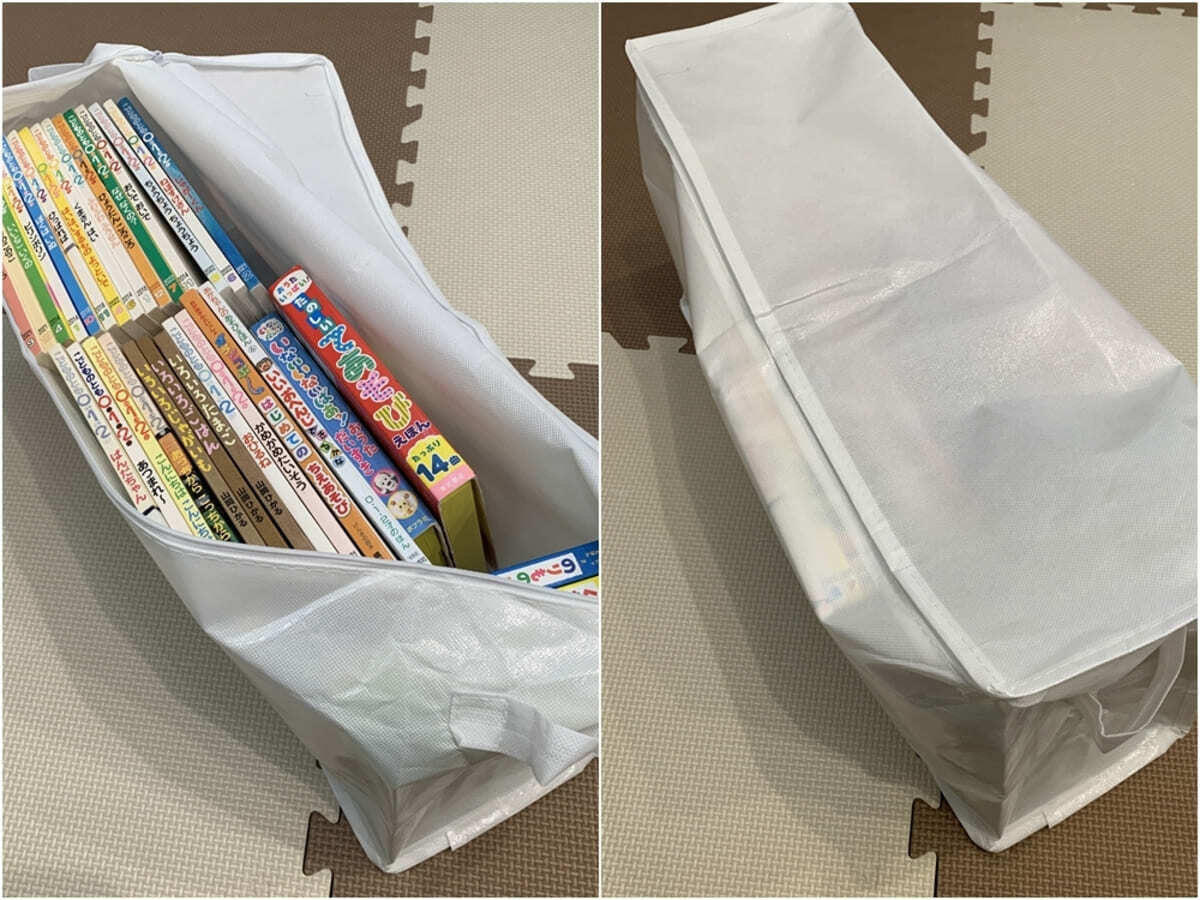 その他、子供の絵本も入れてみましたが、30冊以上収納できました!ファスナー付きのため、ホコリなど汚れから保護できるのも嬉しいアイテムです♪