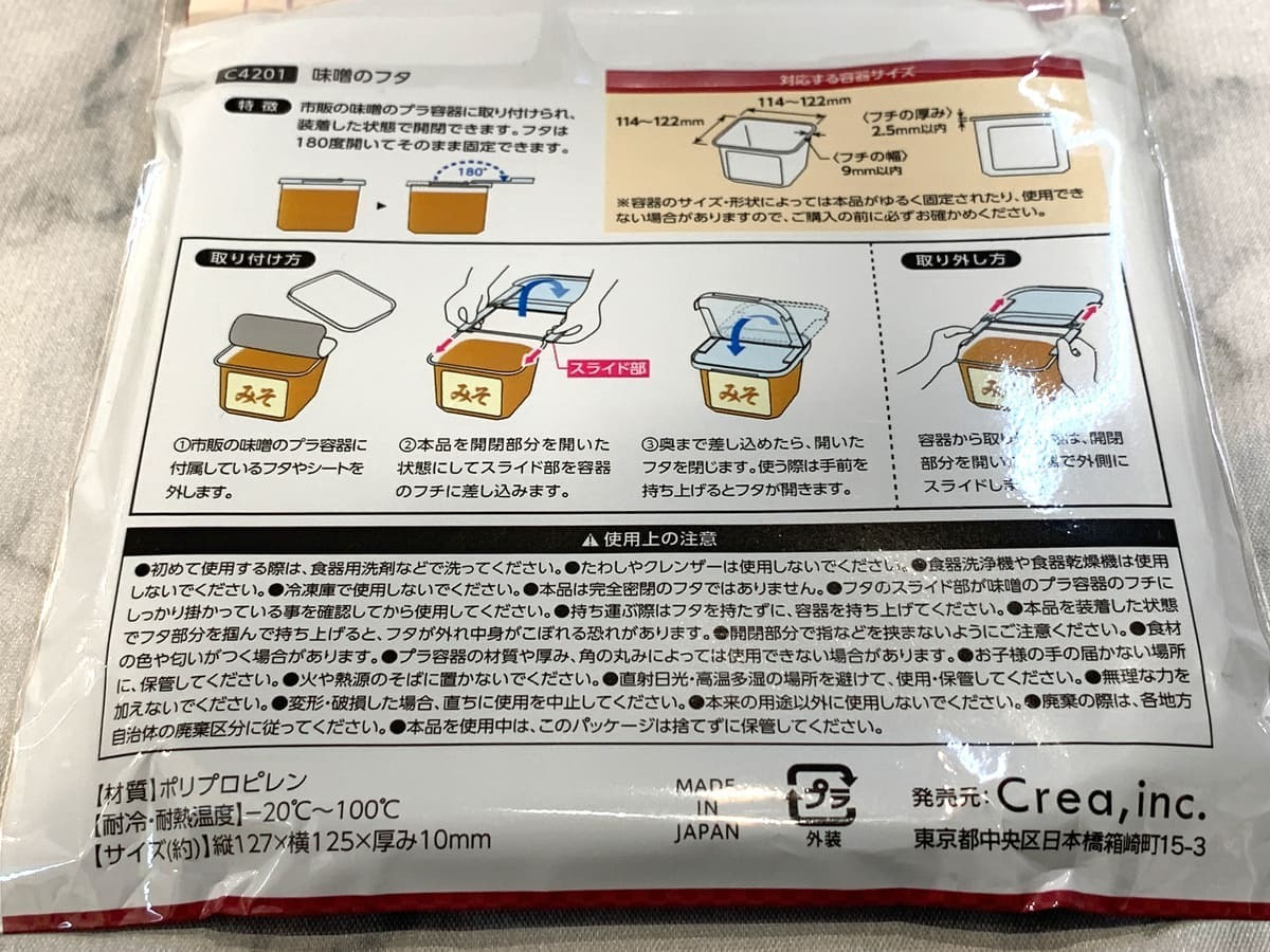 対応容器サイズ:味噌容器114~122mm、フチの厚み2.5mm以内、フチの幅9mm以内