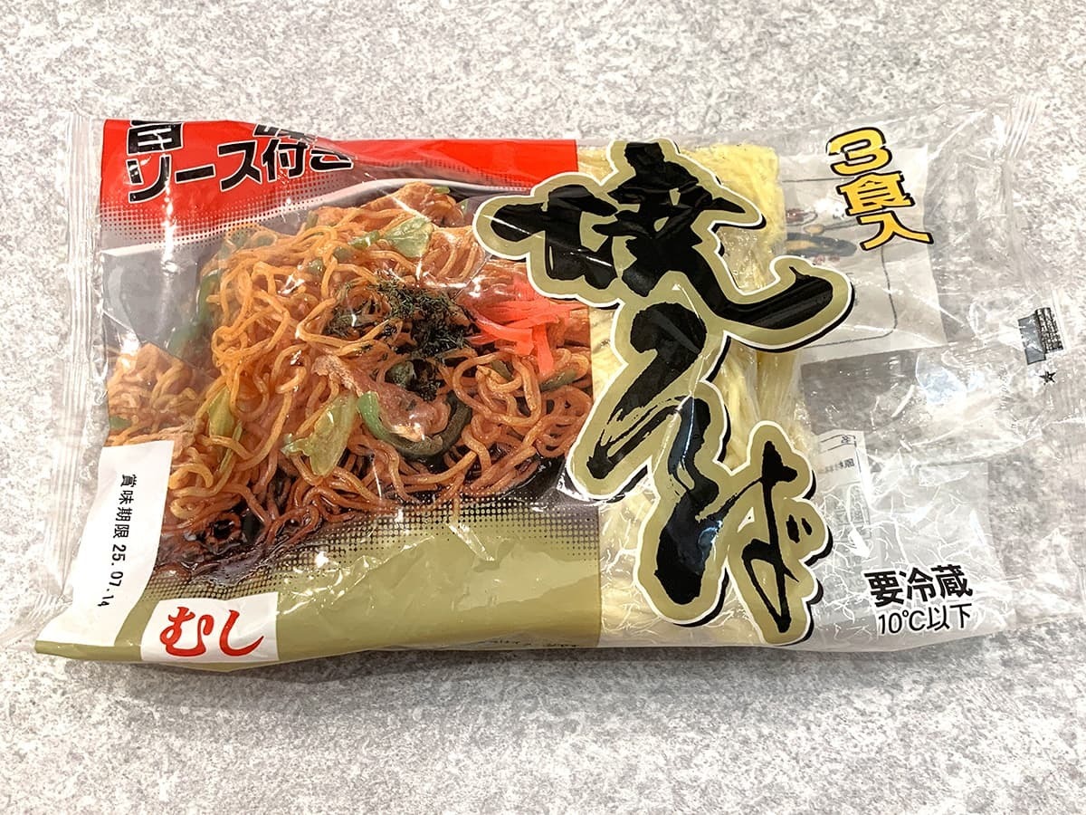 3人分の焼きそばをセットにした一品。価格は127円(税込)となっており、1人前約42円で作れるコスパの良さです!