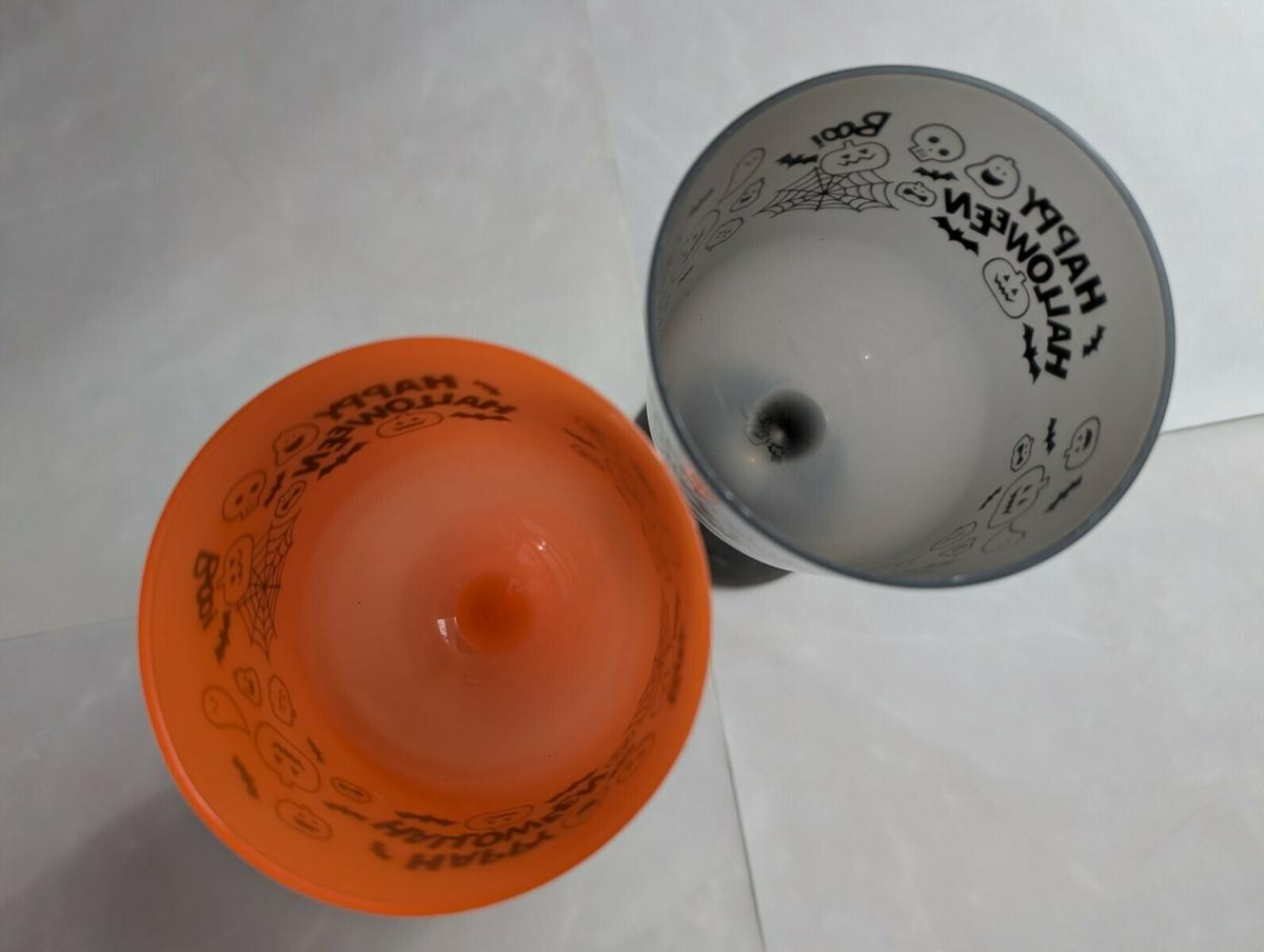 透明のプラスチックカップに貼ってみたら、一瞬でハロウィン仕様に変身♪