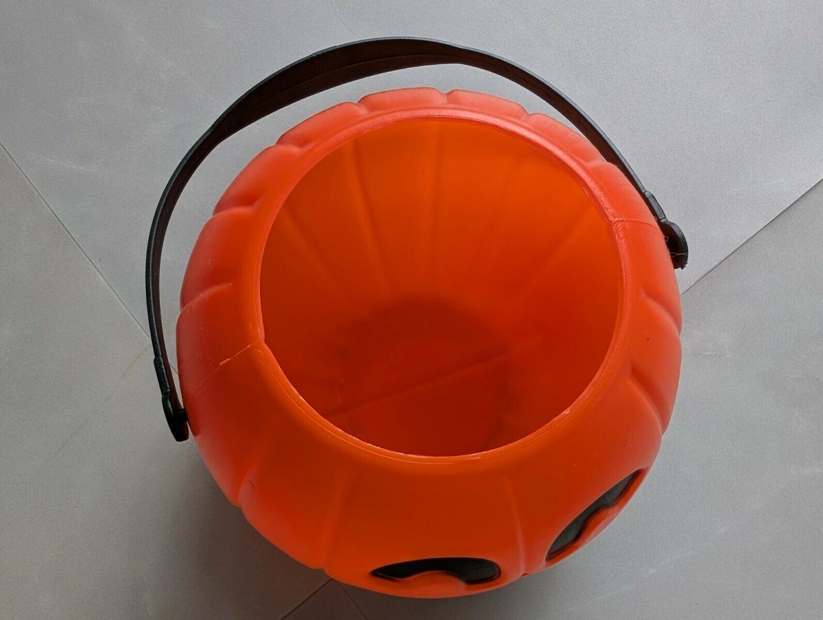 にっこり笑ったかぼちゃの顔がかわいく、持ち手がついているので子どもがお菓子を集めるのにぴったりです。