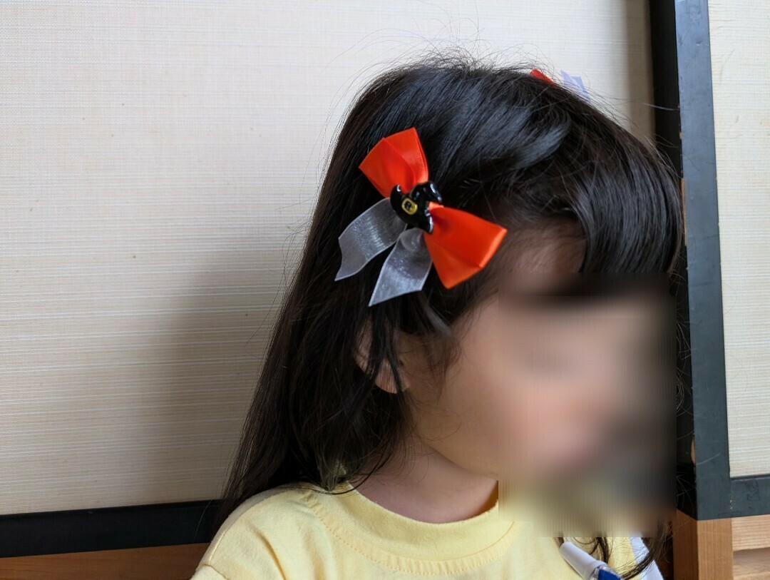筆者の子どもは、黒髪なので、装着すると自然になじんでとてもかわいい印象になりました。
