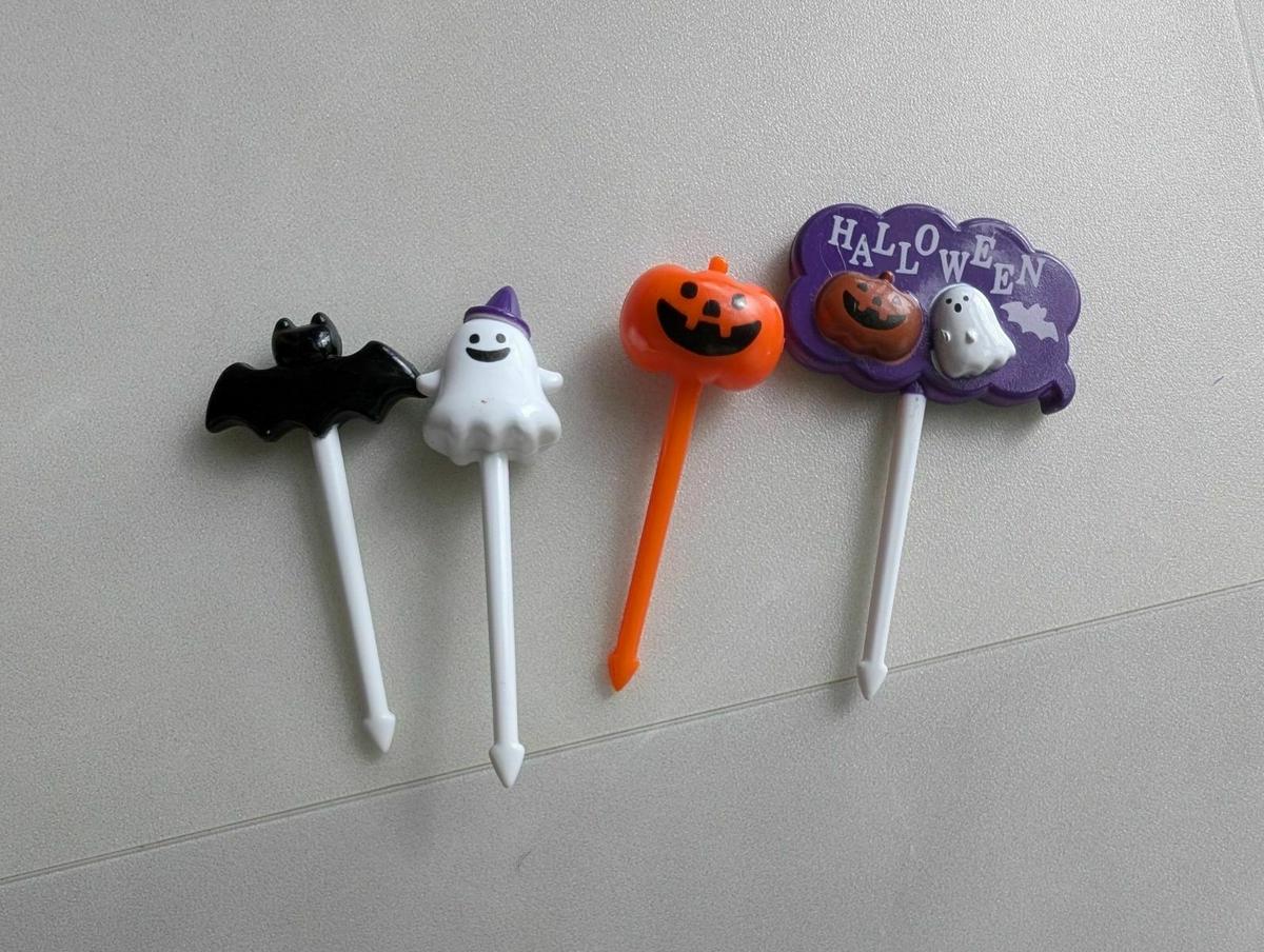かぼちゃやおばけのモチーフがついた4本入りピックスです。
