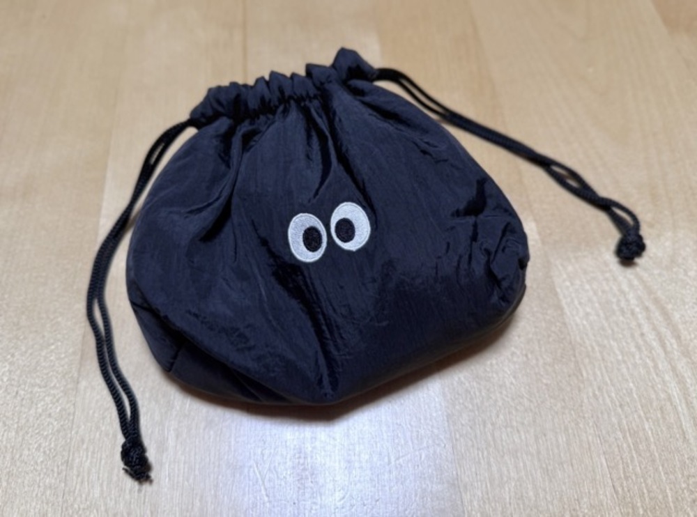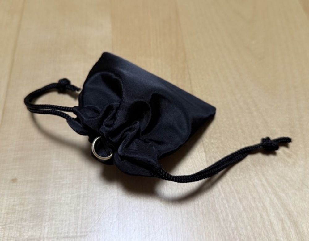 さっと小物をしまえる巾着タイプですが、口部分は割としっかり閉まる印象。