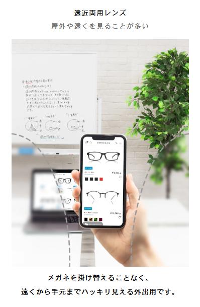 ・追加料金0円の遠近両用:OWNDAYSでは、遠近レンズが、なんと追加料金0円で選べます。PC作業用や読書用など、あなたのライフスタイルに合わせた最適な一本が必ず見つかります。