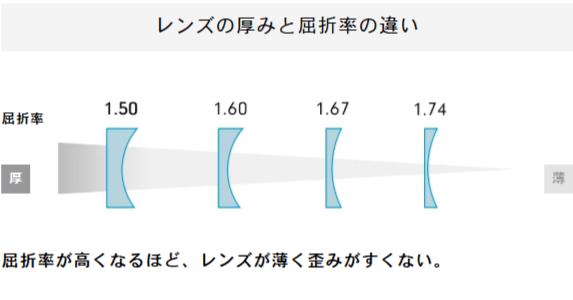 ・屈折率1.60 / 1.67 / 1.74の3種から、視力に応じて最適なものを選択(※もちろん追加料金なし)
