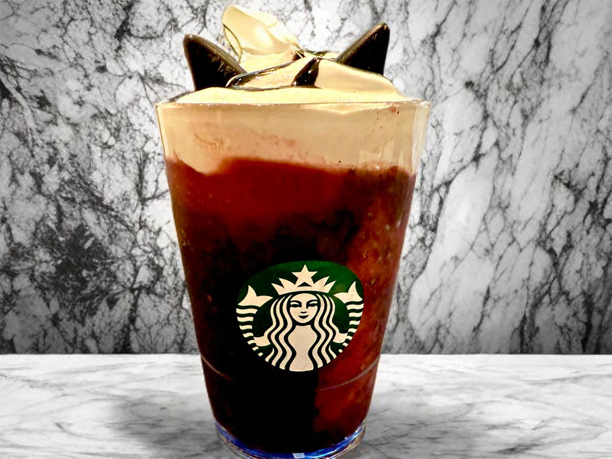 実はフラペチーノの中に黒猫が迷い込んでしまった!というのがそのコンセプト。