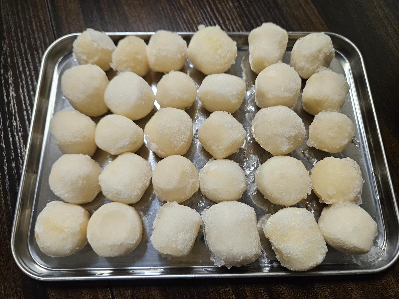 片栗粉や調味料などを入れなくも、こねていれば自然と粘りが出てくるので素材のみで団子にしています。こねるときもスプーンなどでこねるので手も汚れません♪