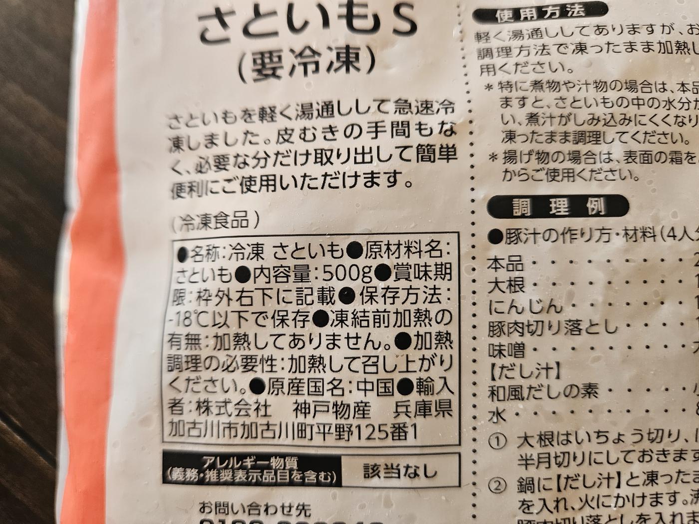 業務スーパーの『さといも(S)』の原産国は中国で、価格は500g入りで税込300円です!