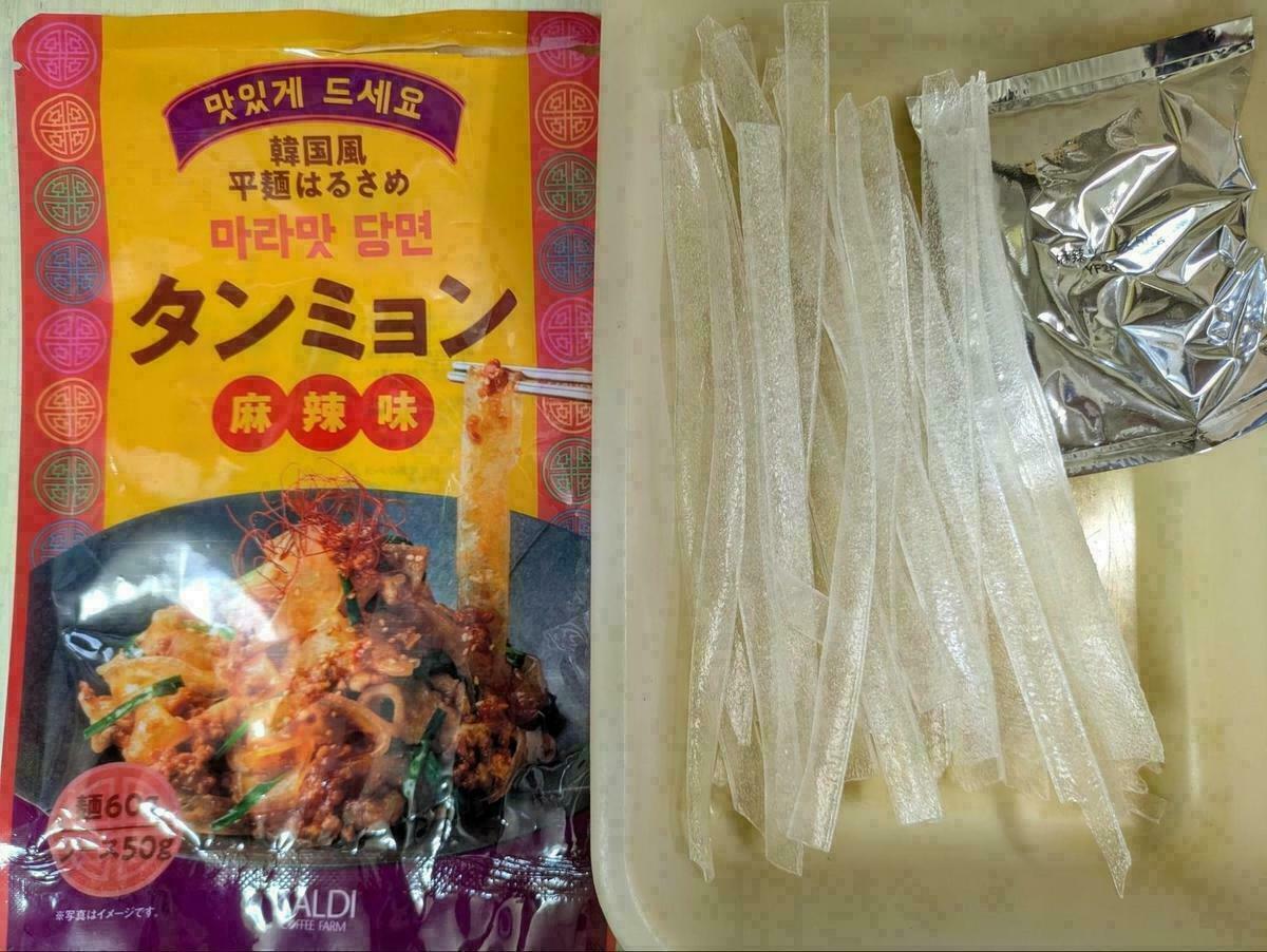 近年流行っている太くて平たい春雨の「タンミョン」。カルディでも発見しました!