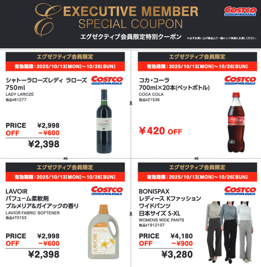 【エグゼクティブ会員向け】10/13~10/26コストコ最新セール・割引情報