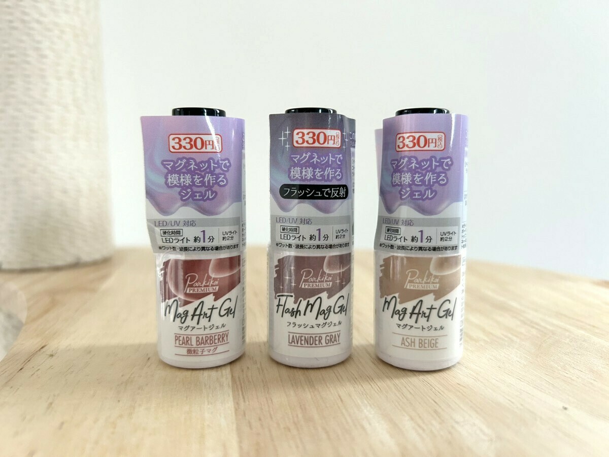 今回は、そんなキャンドゥの人気マグネットジェルネイルから、「マグアートジェル」「微粒子マグ」「フラッシュマグ」の3種類を実際に使ってみた様子と仕上がりをレビューします。