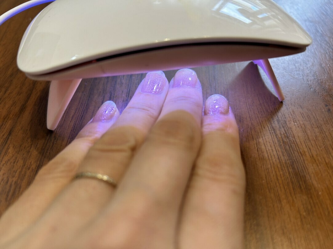 ジェルネイルなので、LEDライトを使用して硬化します。