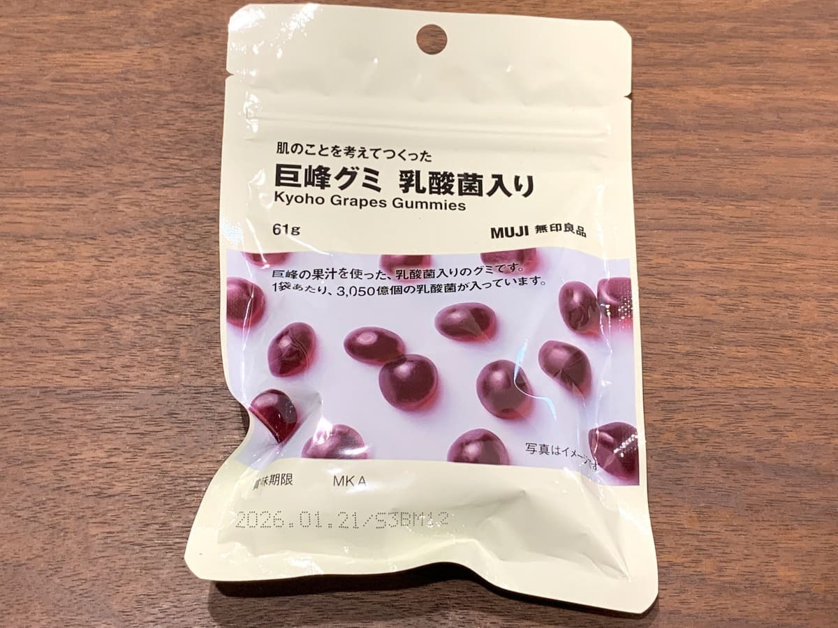 無印良品の「肌のことを考えてつくった」シリーズから、「巨峰グミ 乳酸菌入り」をご紹介します。
