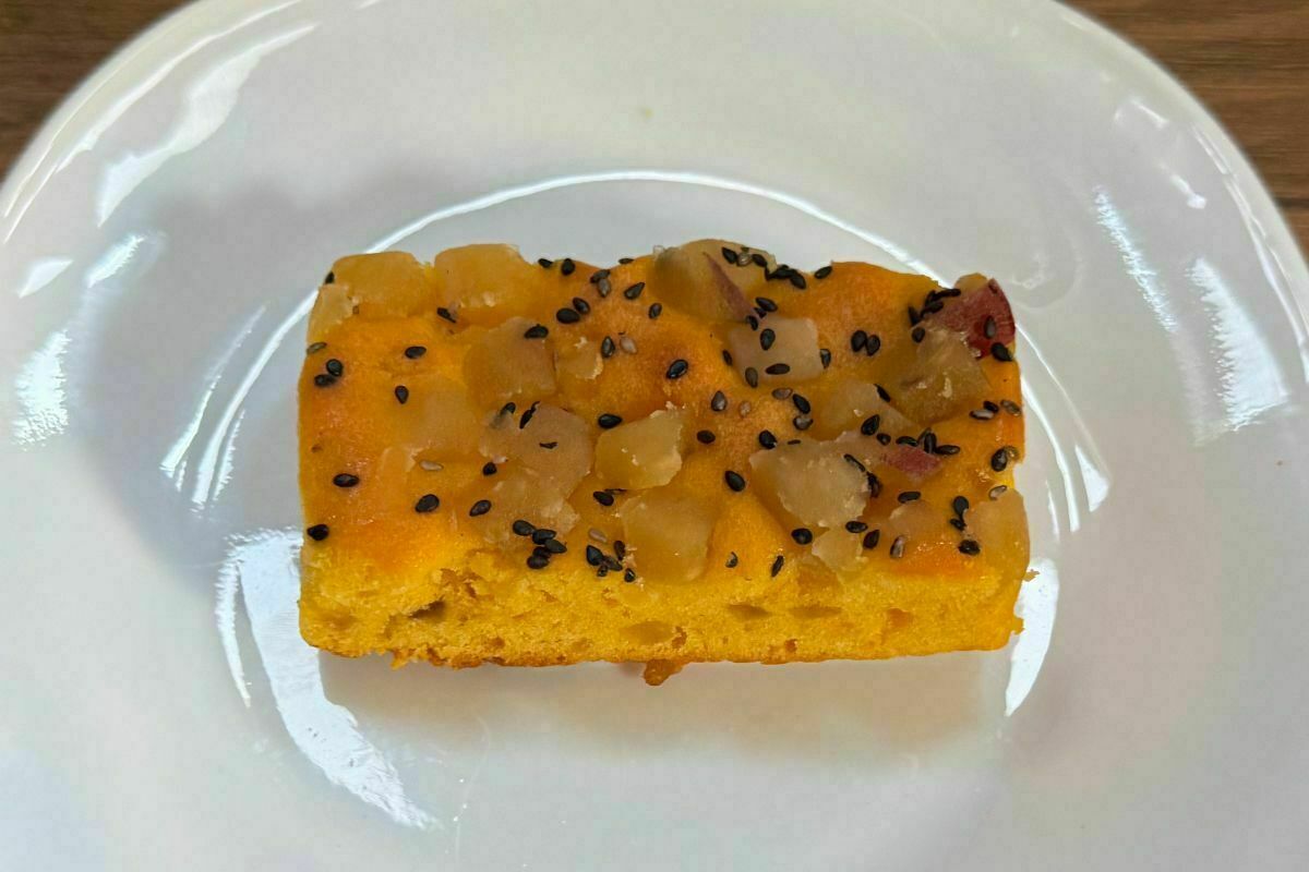 実際に口にすると、しっとりとした食感と、程よいさつまいも感が感じられ、トッピングされた黒胡麻の風味が良いアクセントになっています。