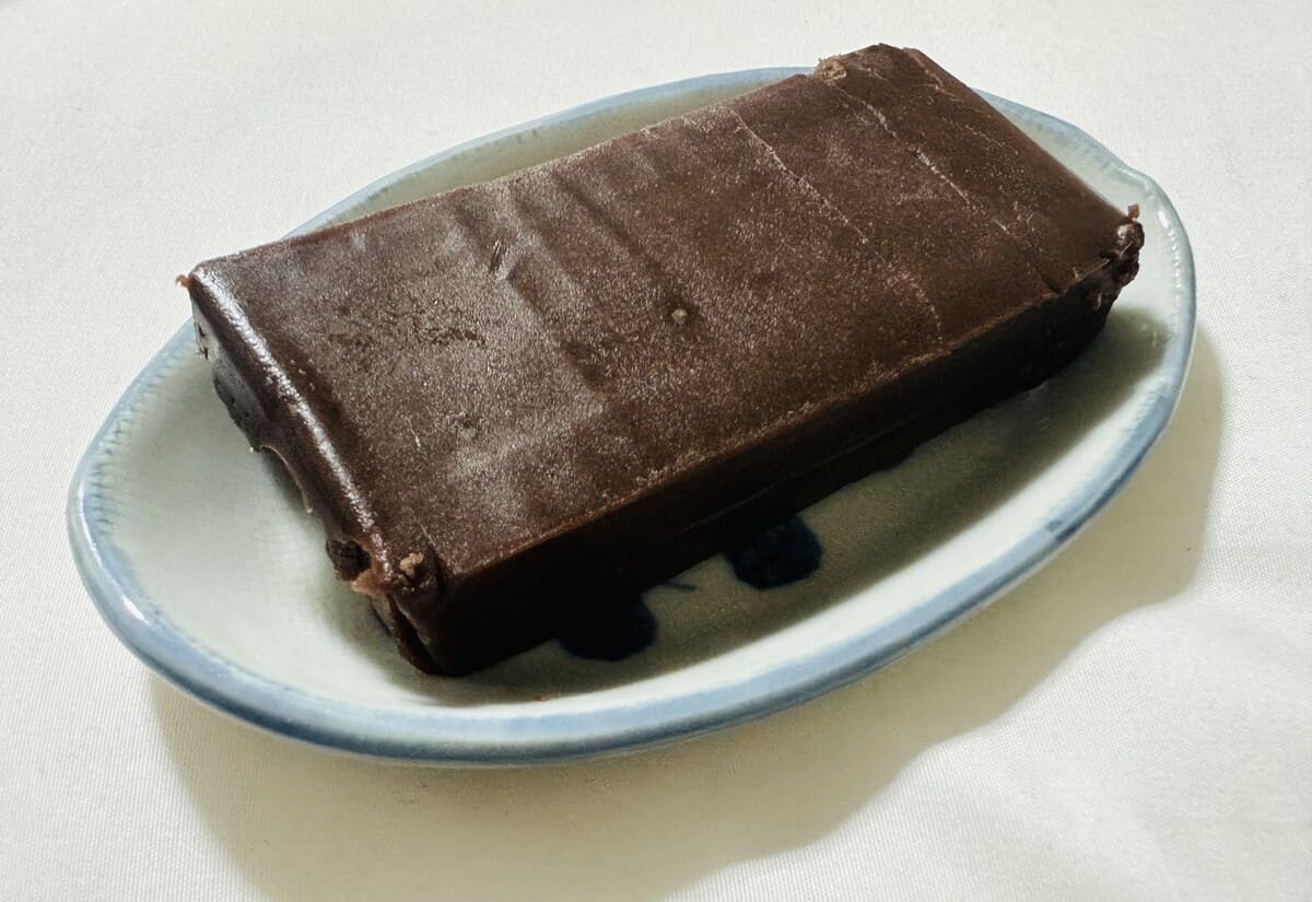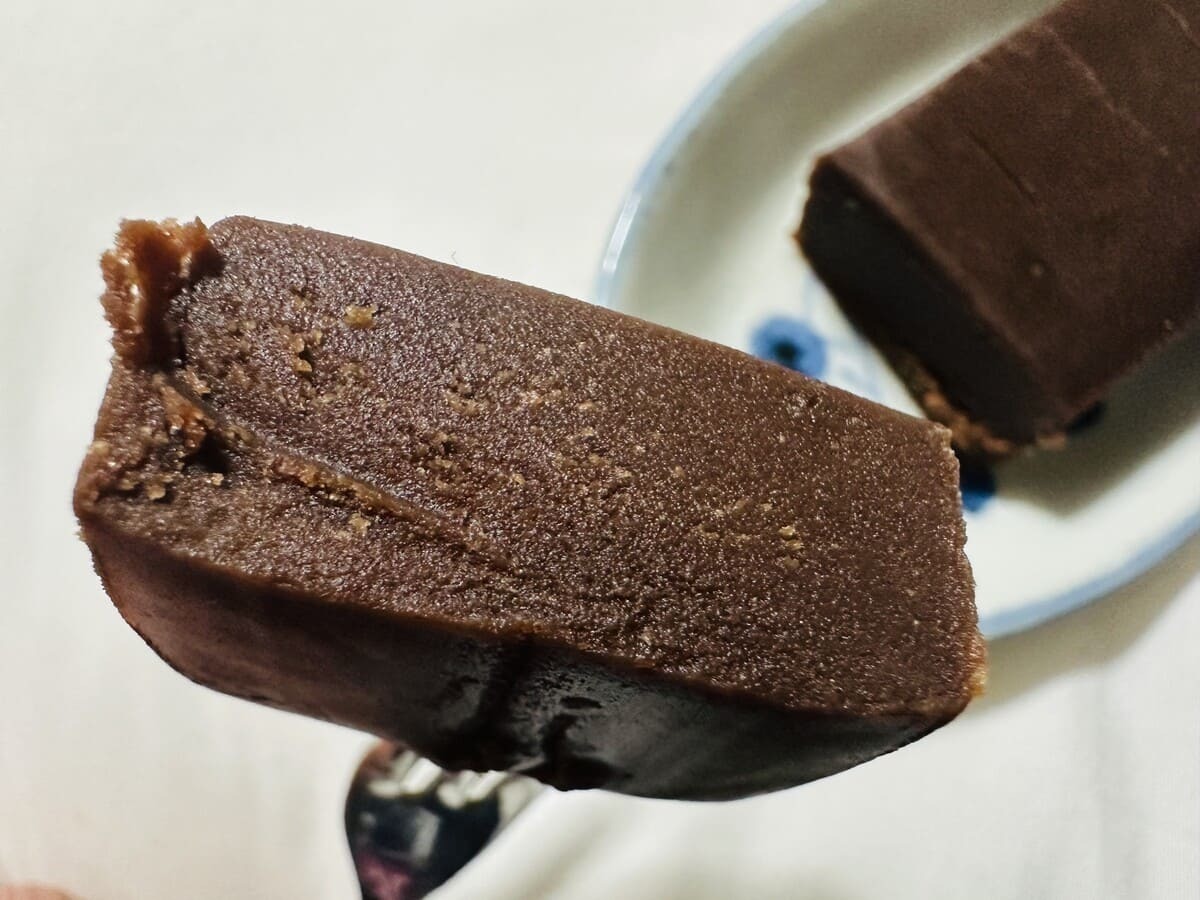 味わいは、チョコレートがメインで、ようかんの風味はかすかに感じる程度。甘さ控えめで後味も良く、粘り気がありながらも口に残らない食べやすさが特徴です。