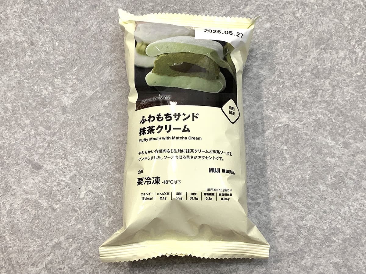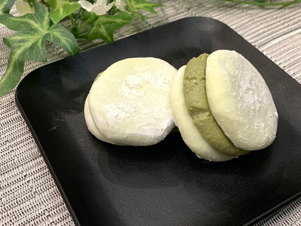 驚くほどの「ふわもち」食感が楽しめる、「ふわもちサンド 抹茶クリーム」。白玉粉をベースにした生地で、宇治抹茶ペーストを使ったクリームをサンドしています。