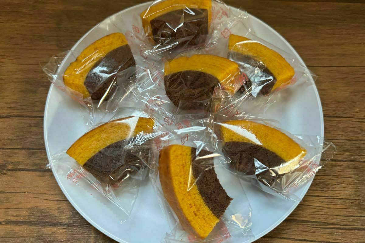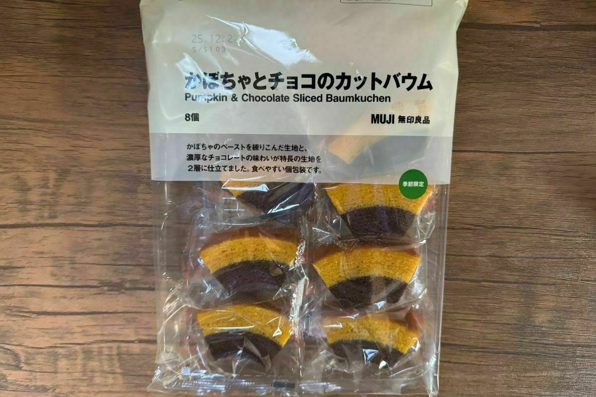 かぼちゃペースト入りの生地と、濃厚なチョコレート生地。この二つを重ね合わせた、秋らしい色合いのカットバウムです。個包装で手軽に食べられるのが嬉しいポイント。