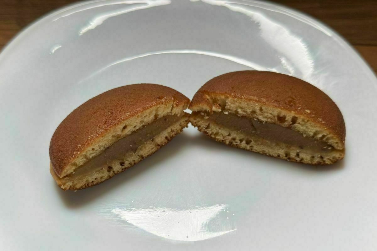 割ってみると、中には栗あんがたっぷりと詰まっています。実際に口にすると、生地は想像以上にもっちりとした食感。