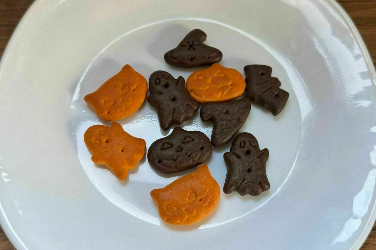 おばけや魔女の形がとってもキュート!ハロウィン気分を盛り上げる、かぼちゃ味とココア味、2種類のビスケットアソートです。