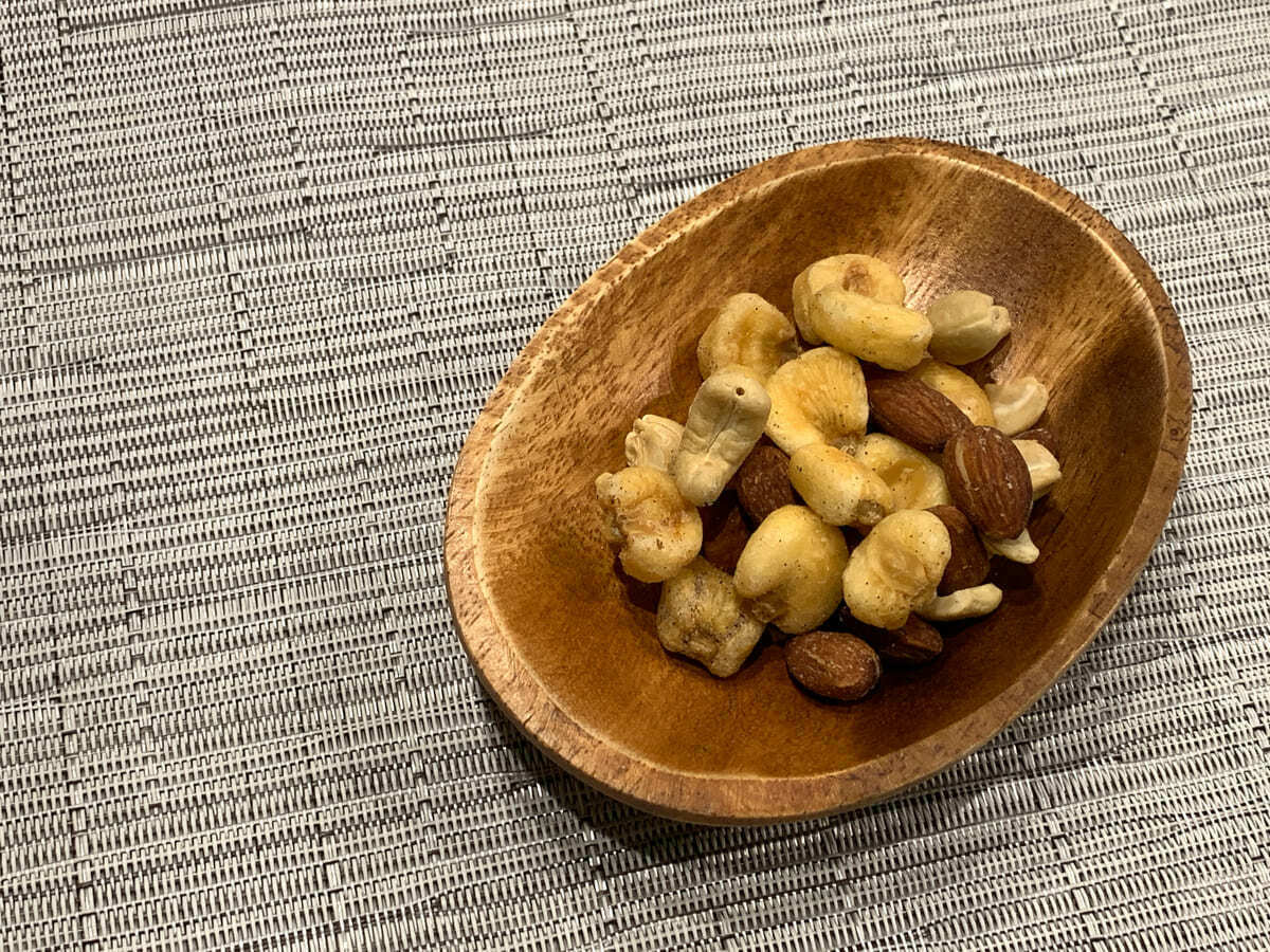 「ミックスナッツ 塩味」は、香ばしくローストして塩で味付けしたアーモンドとカシューナッツに、こしょう風味のジャイアントコーンを加えた、3種類のナッツを楽しめる商品です。