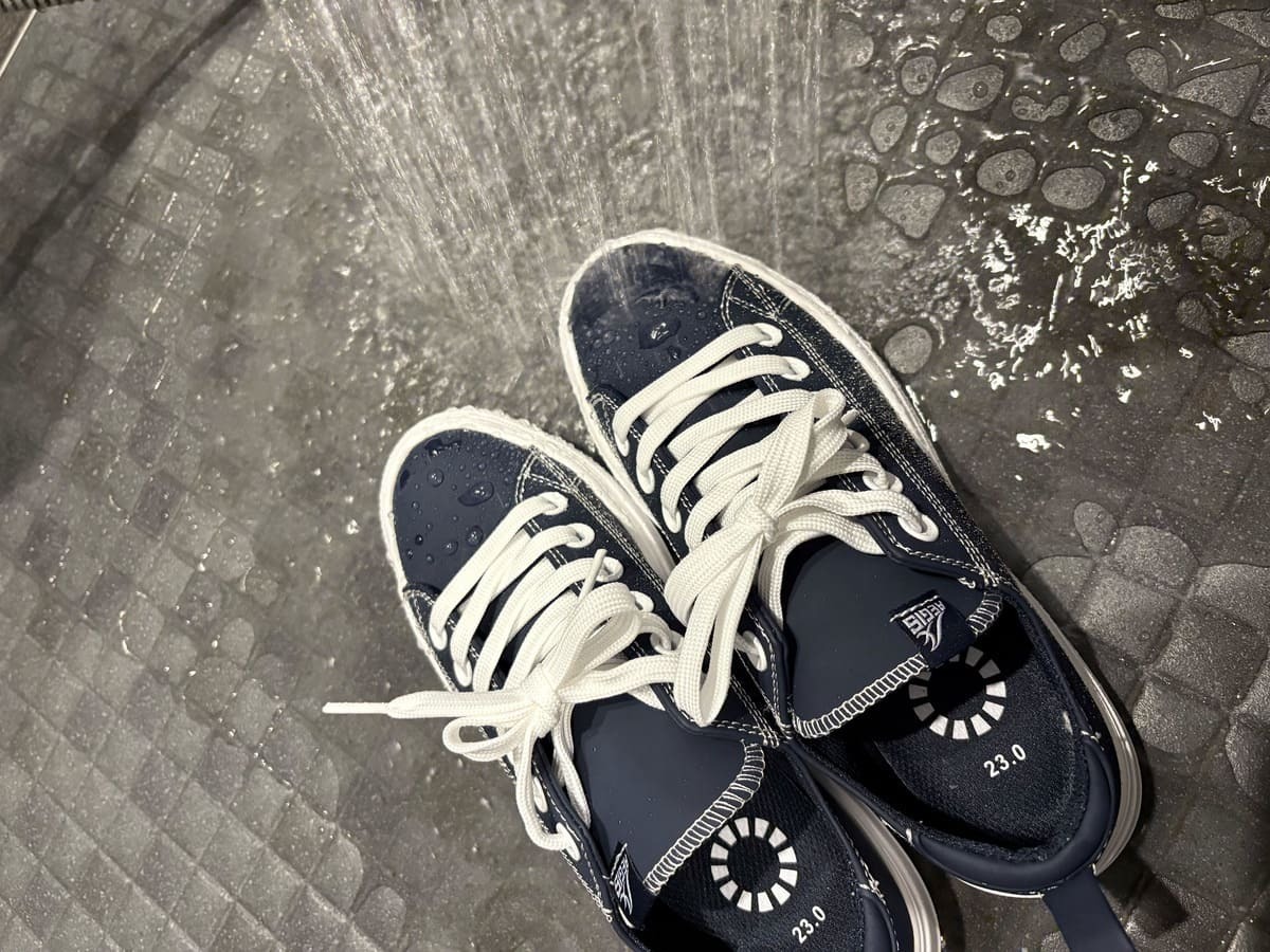 またこのシューズは、接地面から4cmまで防水性があり、水たまりにつっこんでしまっても靴の指先から水が染み込んでくる心配はほぼゼロ!