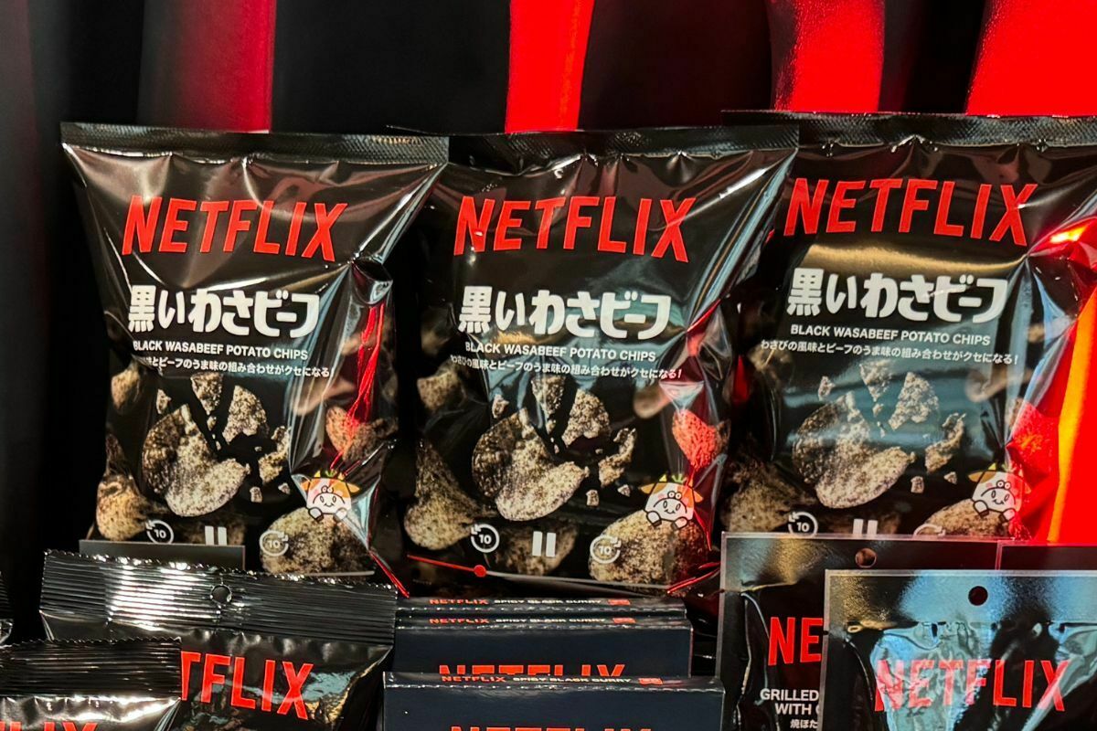 わさびの風味とビーフの旨味が見事に融合した「わさビーフ」が、Netflixを想起させる特別な黒色のチップスになって発売されます!