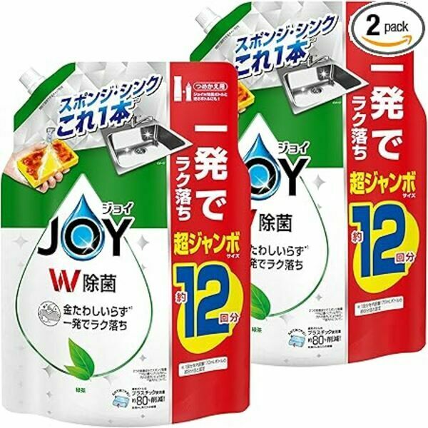 ジョイ W除菌 食器用洗剤 緑茶の香り 詰め替え 超ジャンボ 1550mLx2袋