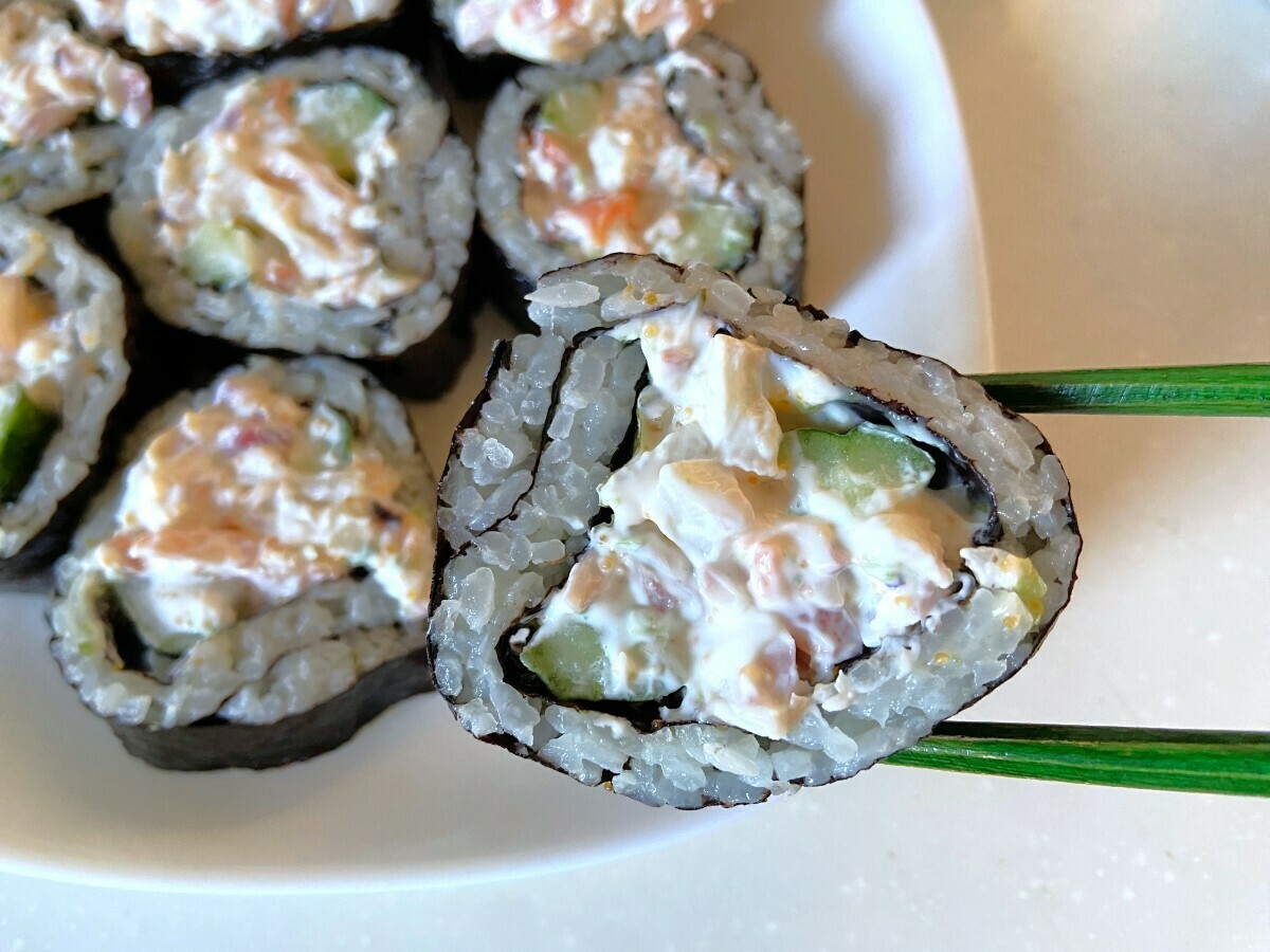 食べてみると、クリーミーでコクのあるマヨネーズソースと海鮮、酢飯と海苔が相性抜群でとっても美味しいですね。