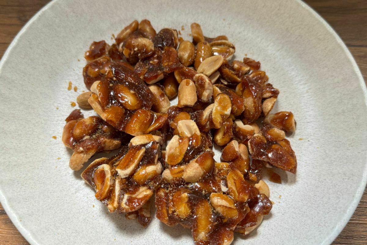 ピーナッツを黒糖でコーティングし、カリッと香ばしく仕上げた一品です!